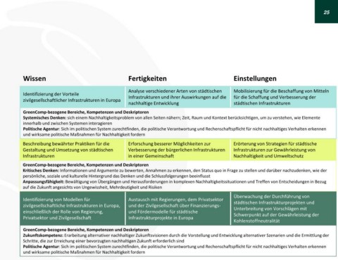 GreenComp-bezogene Bereiche, Kompetenzen und Deskriptoren