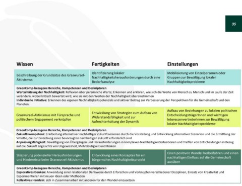 GreenComp-bezogene Bereiche, Kompetenzen und Deskriptoren