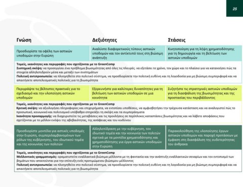 Τομείς, ικανότητες και περιγραφές που σχετίζονται με το GreenComp