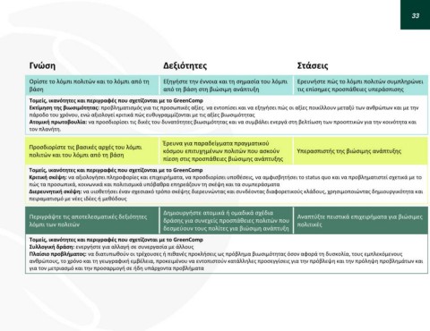 Τομείς, ικανότητες και περιγραφές που σχετίζονται με το GreenComp