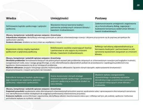 Obszary, kompetencje i wskaźniki opisowe związane z GreenComp