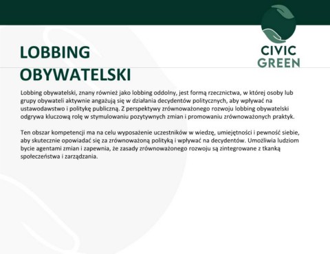 aby skutecznie opowiadać się za zrównoważoną polityką i wpływać na decydentów. Umożliwia ludziom