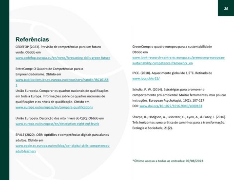 CEDEFOP (2023). Previsão de competências para um futuro GreenComp: o quadro europeu para a sustentabilidade
